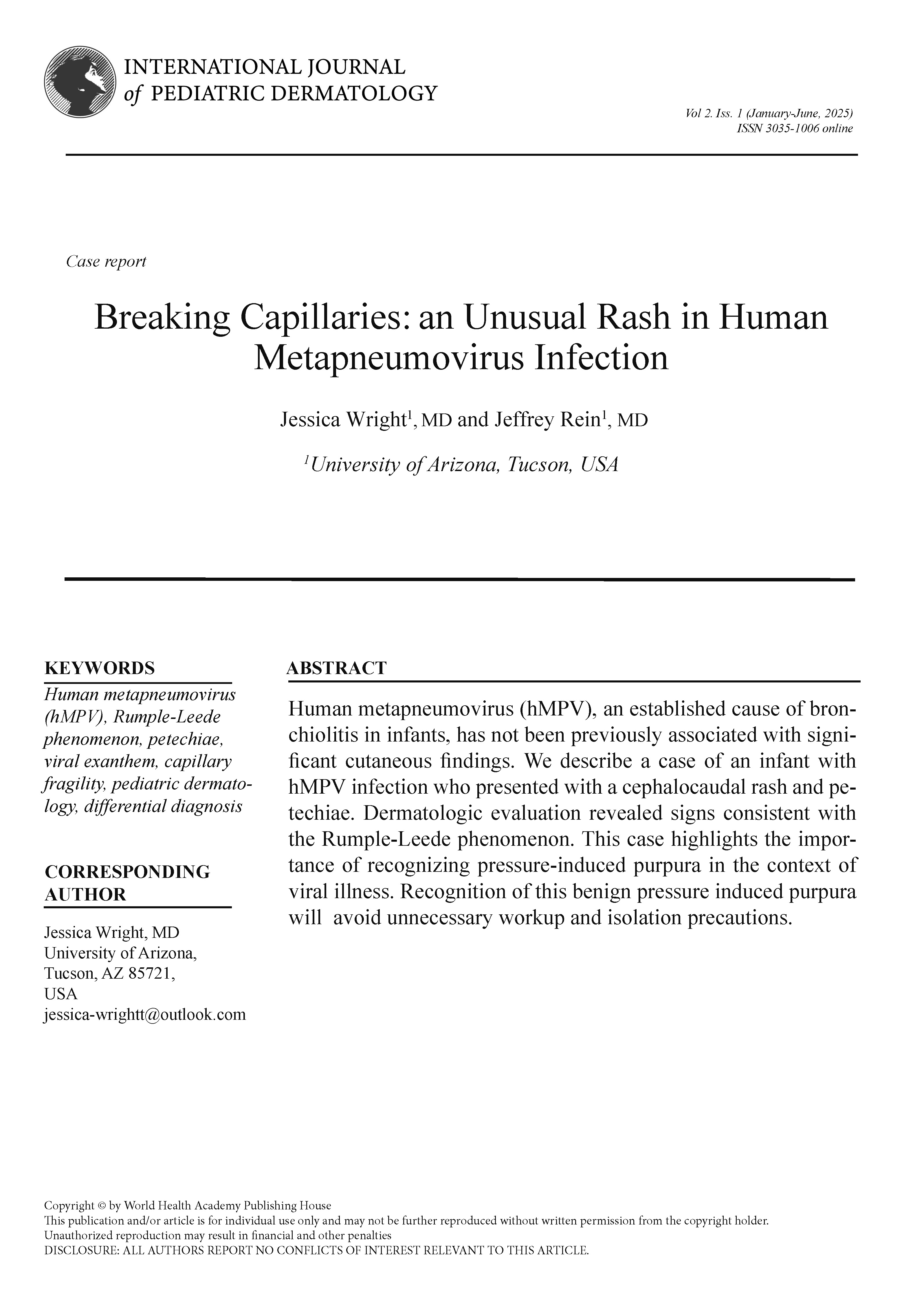 View Vol. 2 No. 1 (2025): International Journal of Pediatric Dermatology