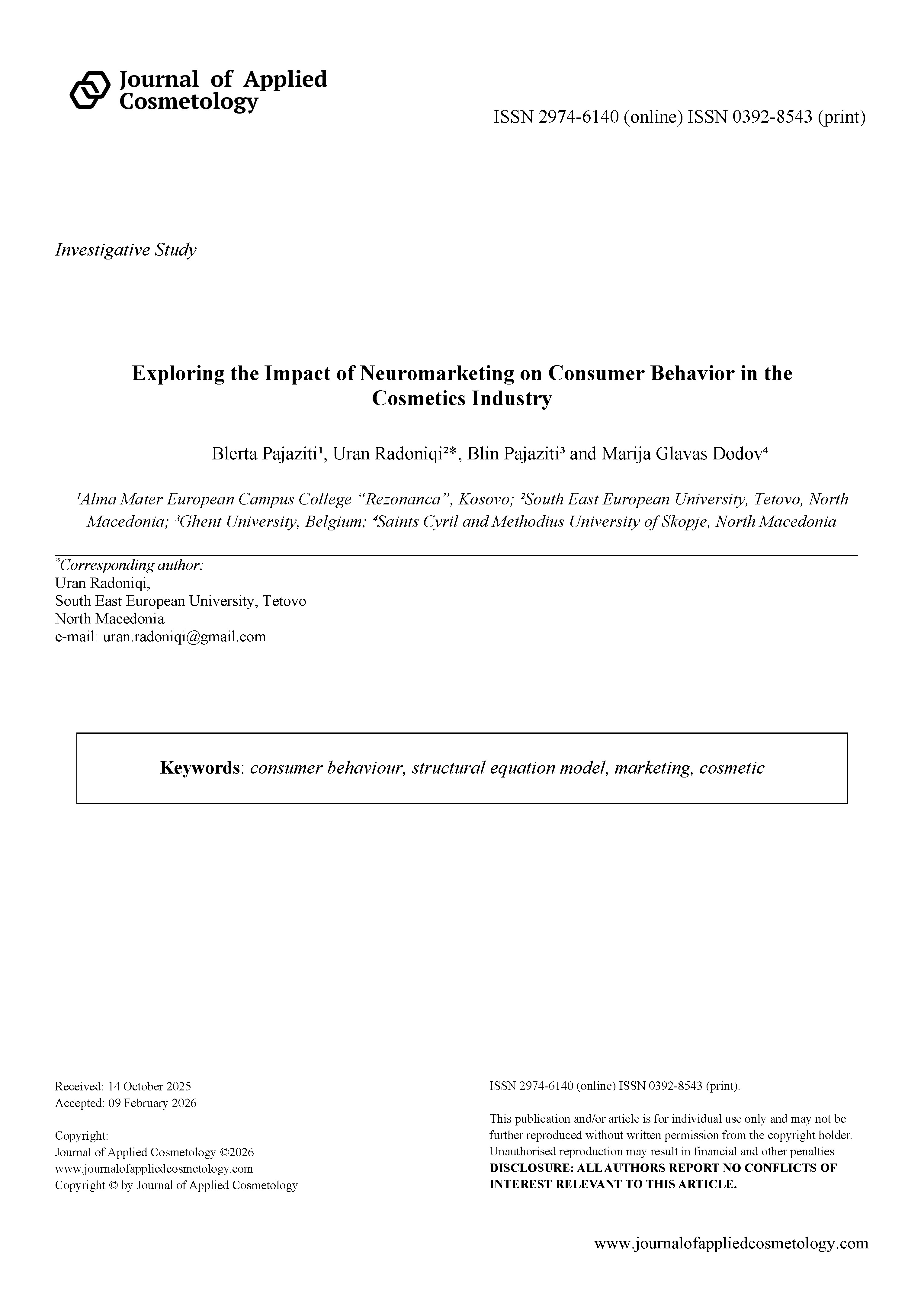 Journal of applied cosmetology, dermatology, scopus, scientific, editorial