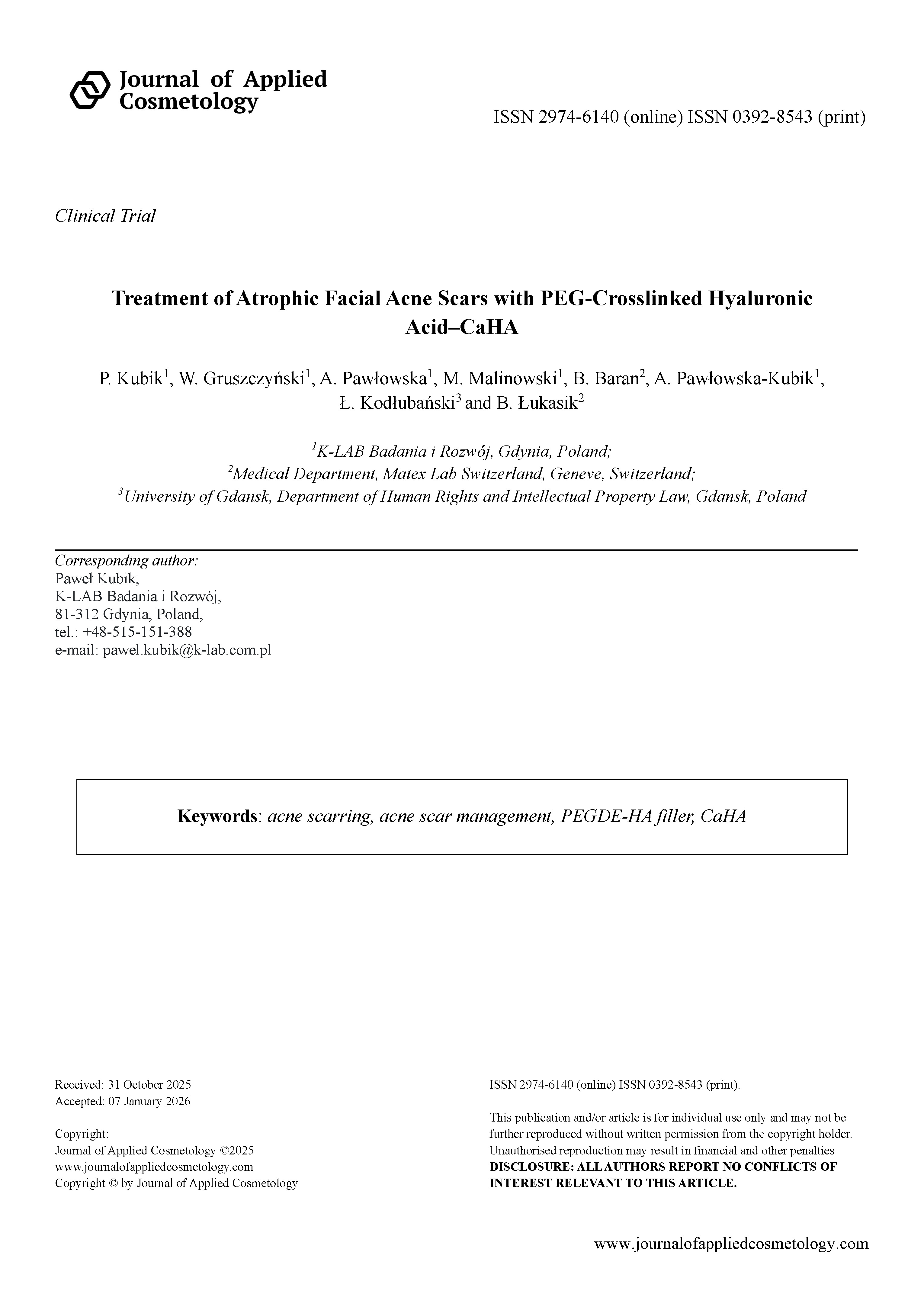 Journal of applied cosmetology, dermatology, scopus, scientific, editorial