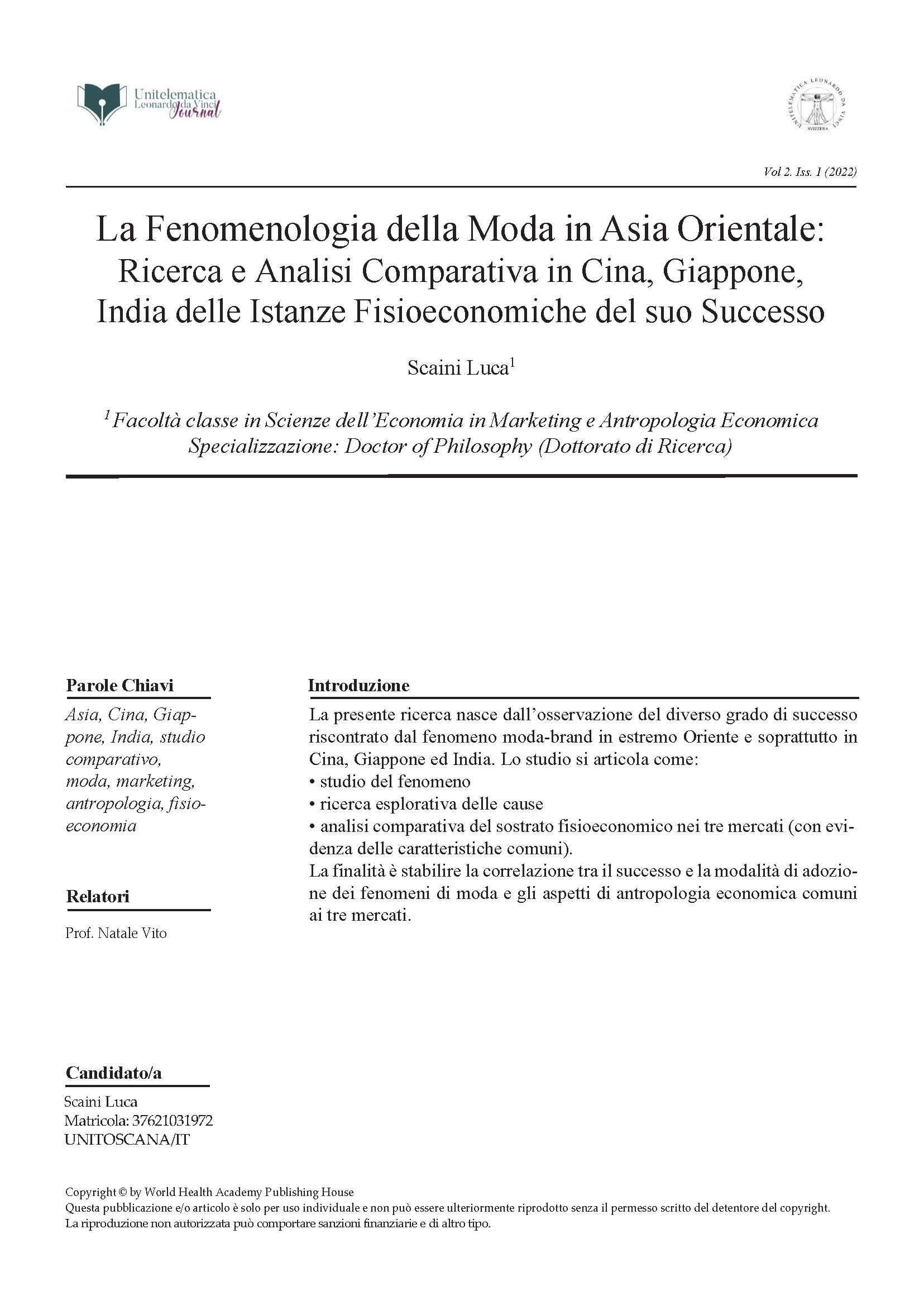 La Fenomenologia della Moda in Asia Orientale: Ricerca e Analisi Comparativa in Cina, Giappone, India delle Istanze Fisioeconomiche del suo Successo